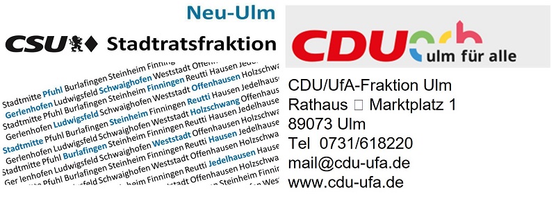 Die CDU/UfA-Fraktion Ulm und die CSU-Stadtratsfraktion Neu-Ulm laden Sie sehr herzlich zu einer gemeinsamen Veranstaltung ein.